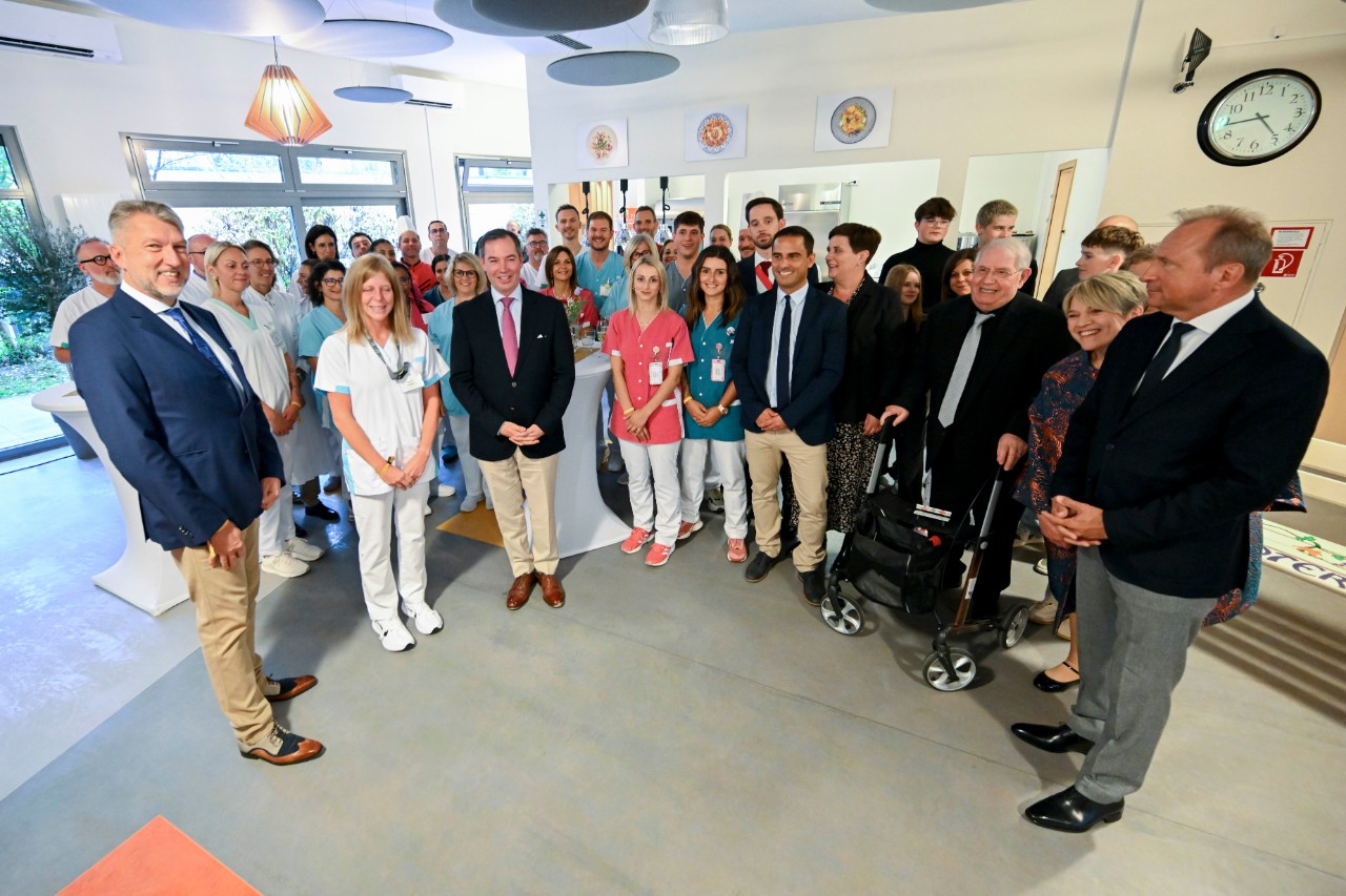 S.K.H. der Großherzog besucht das Interkommunale Krankenhaus Steinfort (HIS), wo er in Anwesenheit des Ministers für Familie, Solidarität, Zusammenleben und Unterbringung von Flüchtlingen, Max Hahn, der Ministerin für Gesundheit und soziale Sicherheit, Martine Deprez, und des Ministers der Finanzen, Gilles Roth, mit dem Pflegepersonal und den Patienten zusammentrifft. Durch diesen Besuch werden all jene gewürdigt, die sich unermüdlich für die Gesellschaft einsetzen, selbst in der Festzeit.