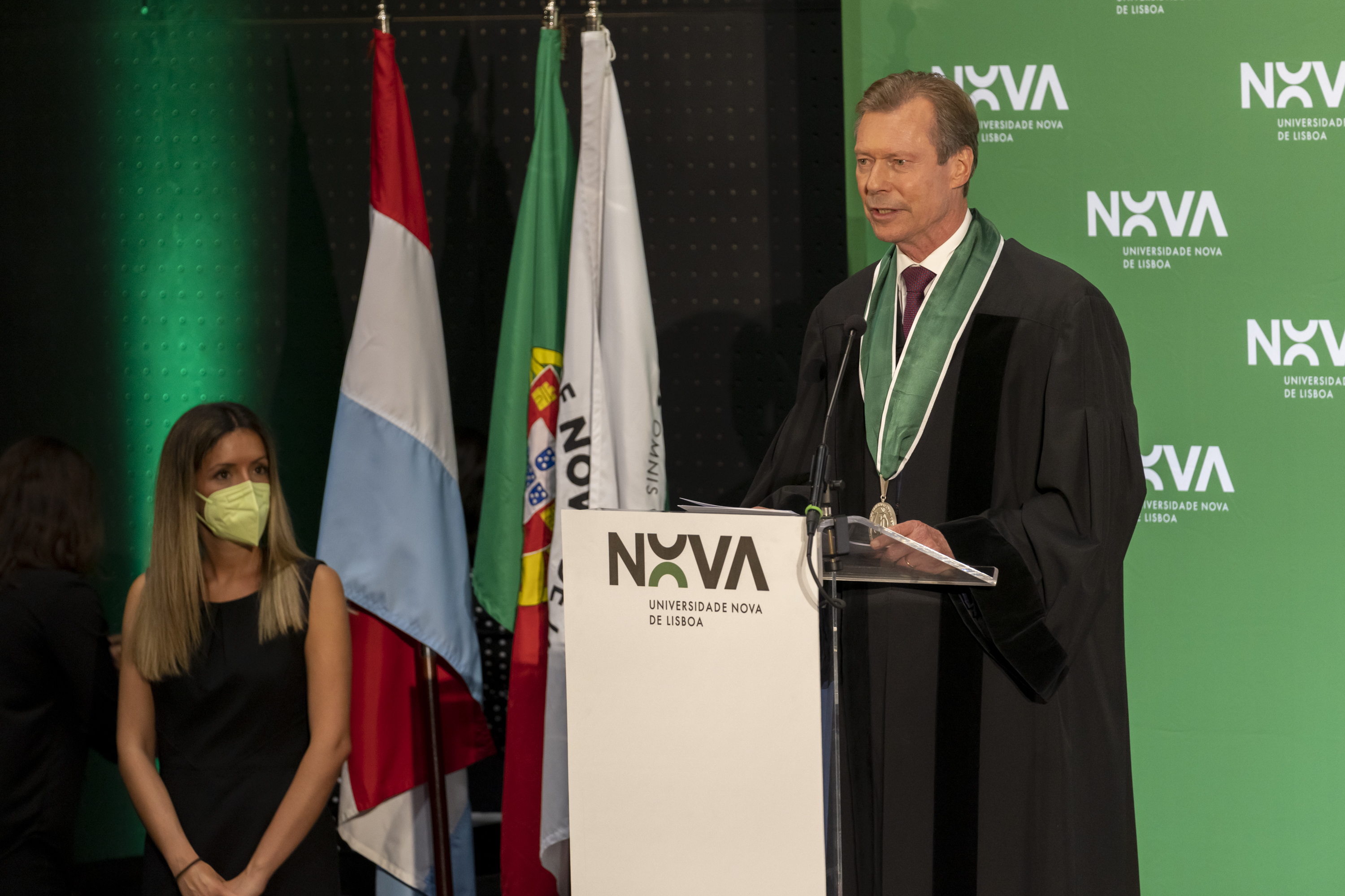 Das großherzogliche Paar wurde anschließend gemeinsam mit den Ministern Corinne Cahen, Franz Fayot und Yuriko Backes auf dem Campus Campolide der Universidade NOVA de Lisboa vom Präsidenten der Portugiesischen Republik, Marcelo Rebelo de Sousa, und dem Rektor der Universität, João Sàágua, empfangen. Das Luxemburger Staatsoberhaupt wurde im Rahmen einer akademischen Zeremonie mit dem Doktortitel honoris causa ausgezeichnet. Die Einführungsrede wurde von Ana Santos Pinto gehalten, stellvertretende Vizedekanin für internationale Beziehungen und Inklusion der Universität, gefolgt von einer Rede des Laureaten, S.K.H. des Großherzogs, und des Rektors der Universität.