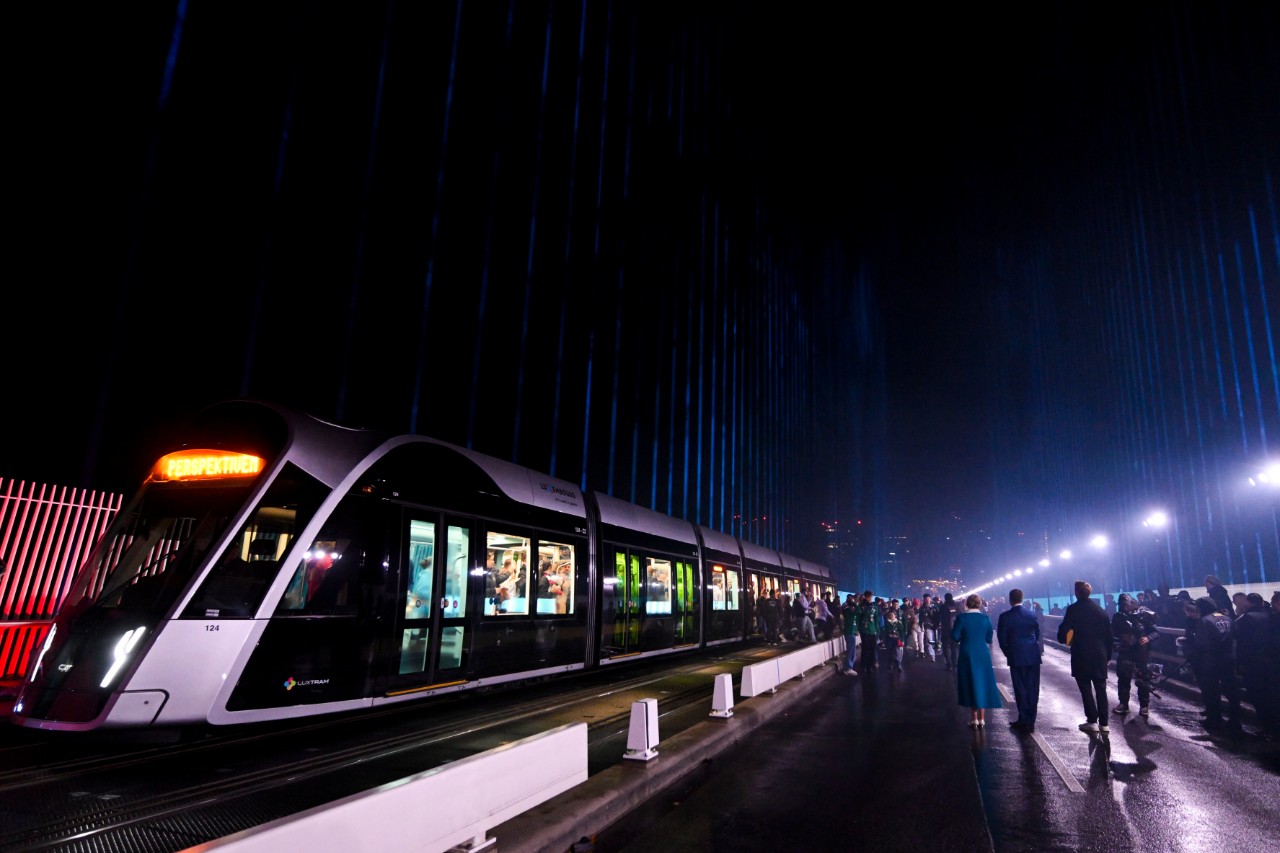 Begleitet von einer dynamischen Orchesteraufführung, tritt das großherzogliche Paar auf die Rote Brücke, umgeben von Vertretern und Vertreterinnen der Gesellschaft und einem bunten Ballett aus Straßenbahnen. Auf dem Vorplatz des Glacis folgt eine maßgeschneiderte Drohnenshow und ein einzigartiges Konzert, das die Talente der vielfältigen luxemburgischen Musikszene in den Vordergrund stellt.