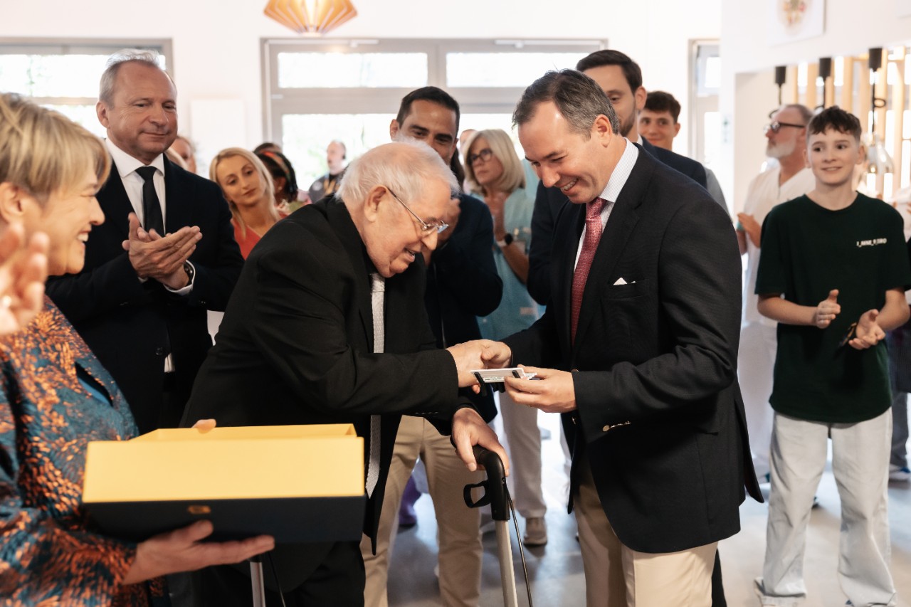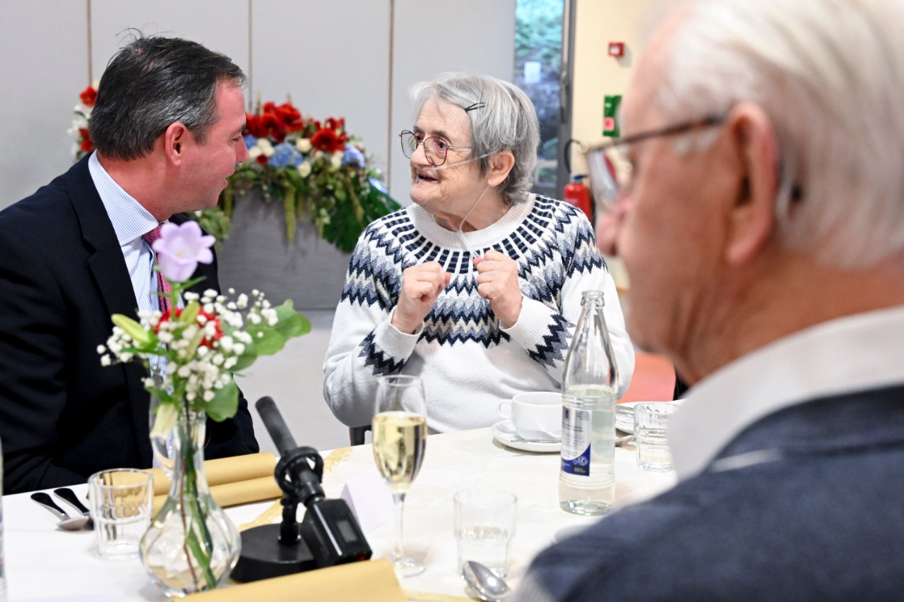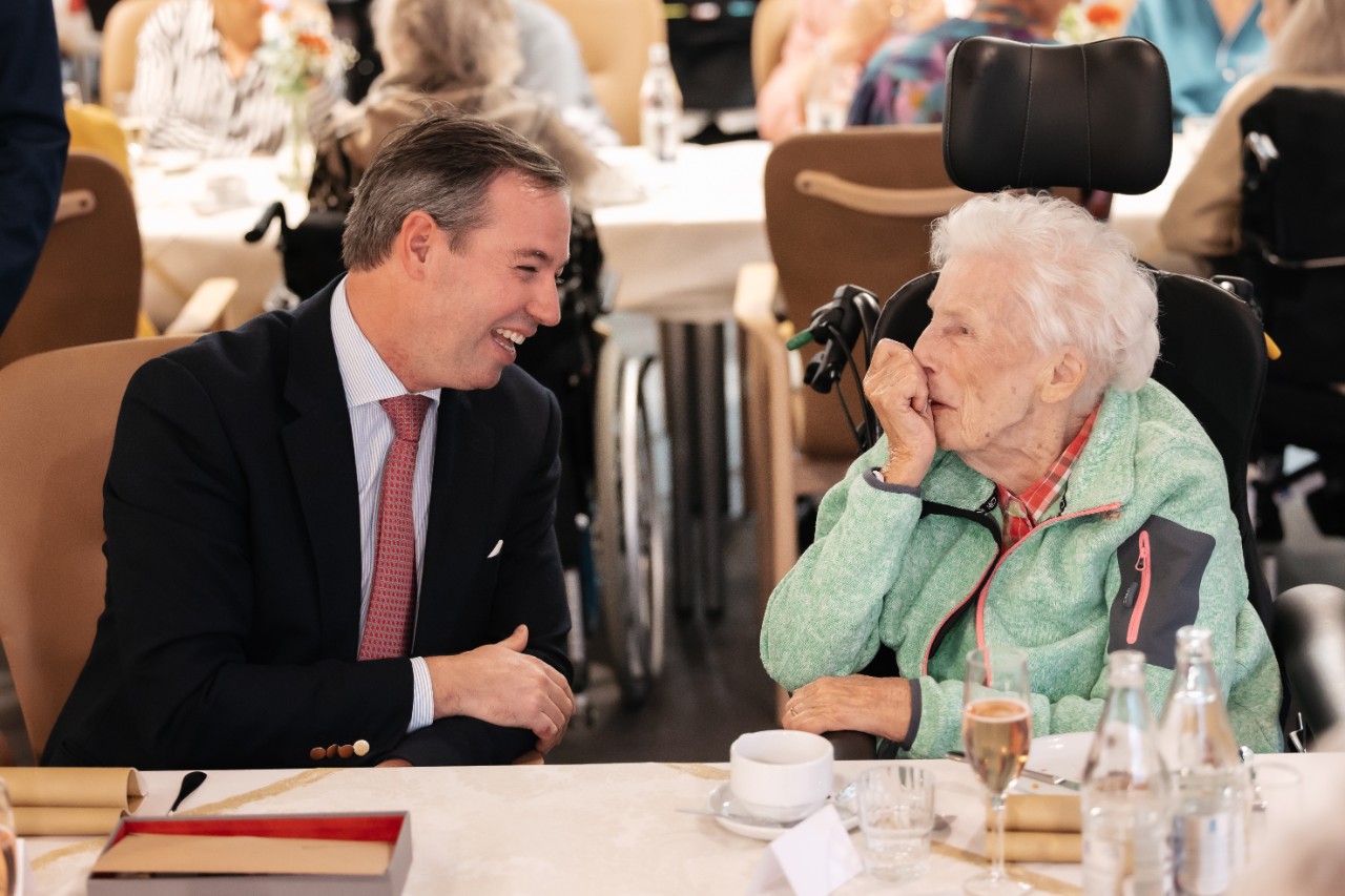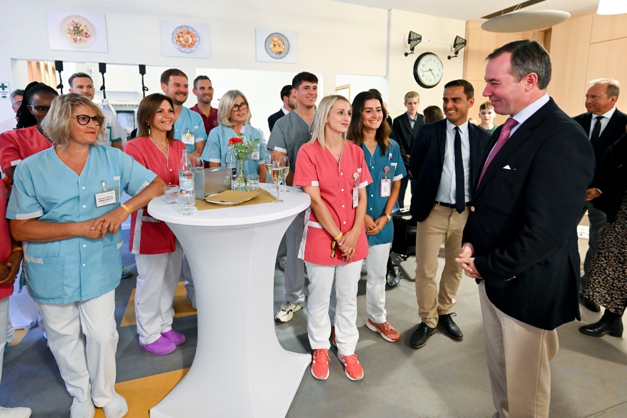 HRH the Grand Duke visits the Intercommunal Hospital of Steinfort (HIS), accompanied by the Minister for Family Affairs, Solidarity, Living Together and Reception of Refugees, Max Hahn, the Minister of Health and Social Security, Martine Deprez, and the Minister of Finance, Gilles Roth. He meets with healthcare staff and patients, thereby highlighting all those who serve society tirelessly, even in times of celebration.