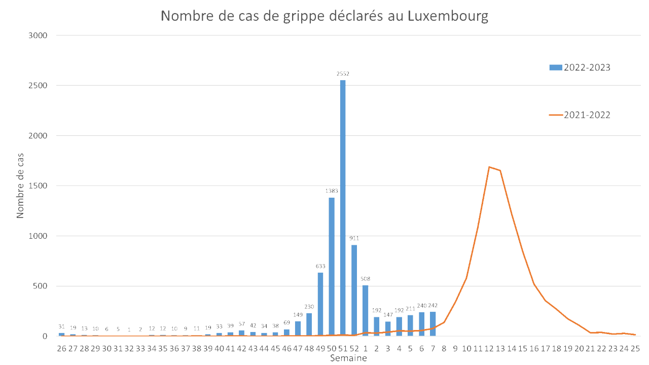 The microbiology department of the LNS, in collaboration with the Health Directorate and a network of sentinel general practitioners and paediatricians throughout the country, carries out annual influenza sentinel surveillance.