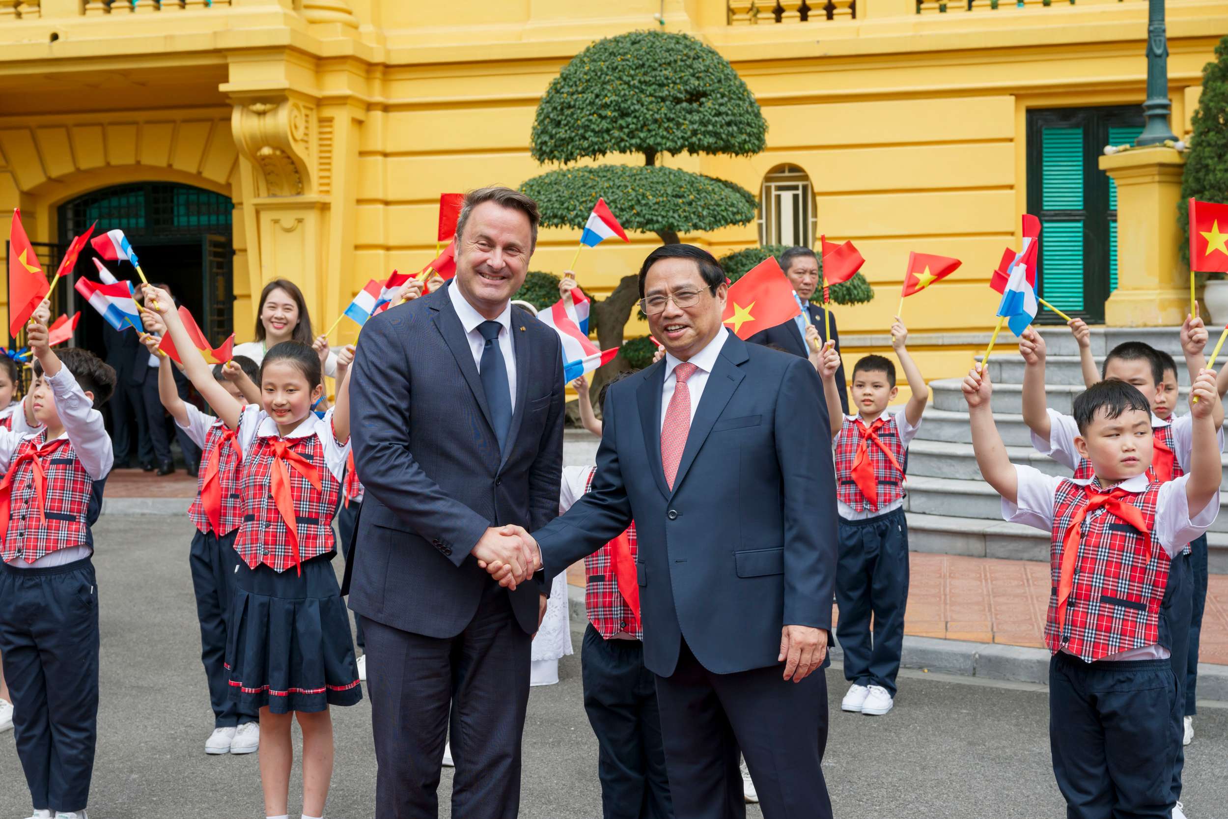 The Prime Minister, Minister of State Xavier Bettel, was then officially welcomed by the Prime Minister of the Socialist Republic of Vietnam, Phạm Minh Chính, at the Presidential Palace in Hanoi.