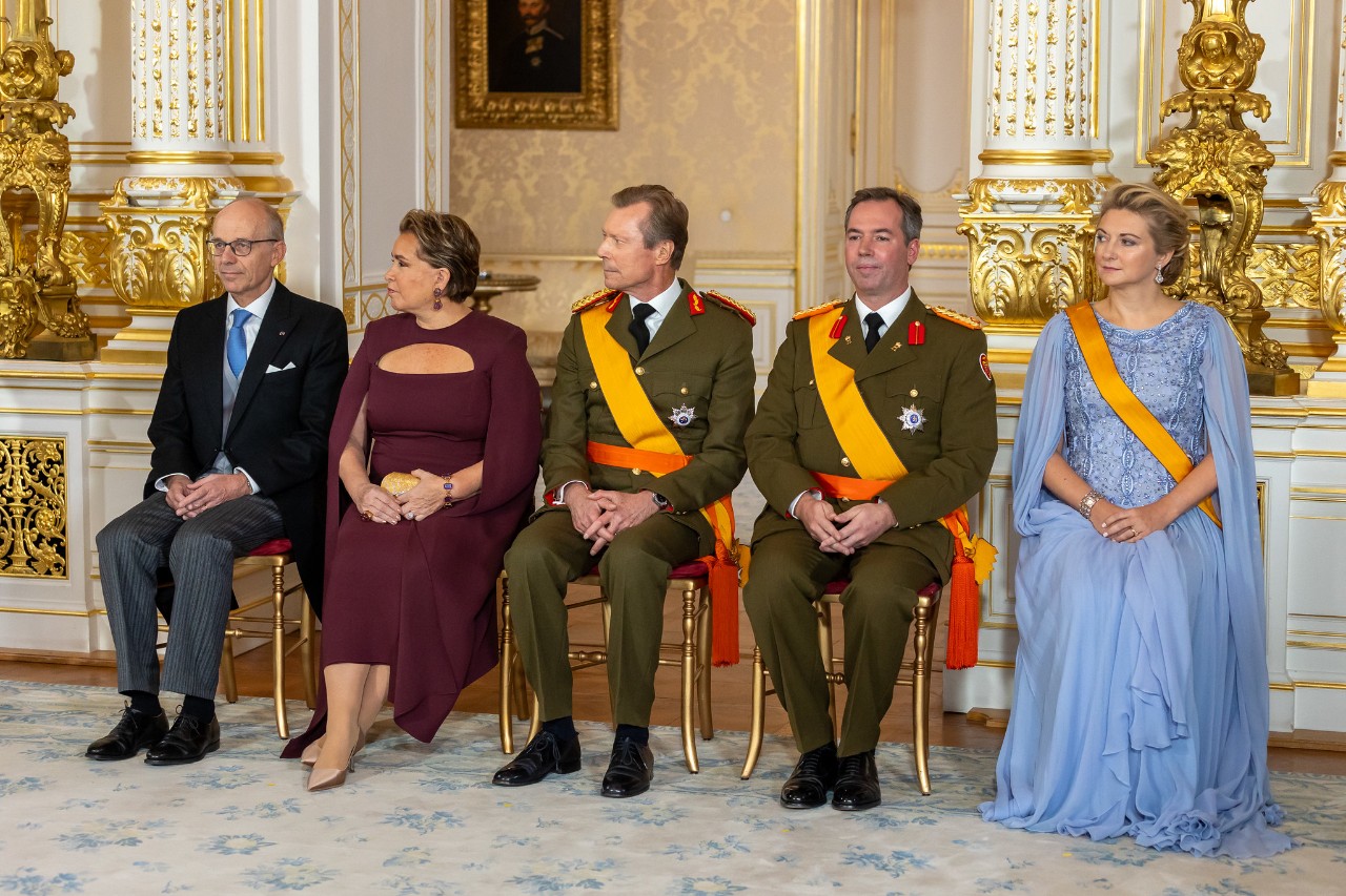 Les frères et sœurs de S.A.R. le Grand-Duc Henri et de S.A.R. le Grand-Duc Guillaume, avec leurs conjoints, ainsi que les suites de LL.AA.RR. le Grand-Duc et la Grande-Duchesse assistent également à l'événement.