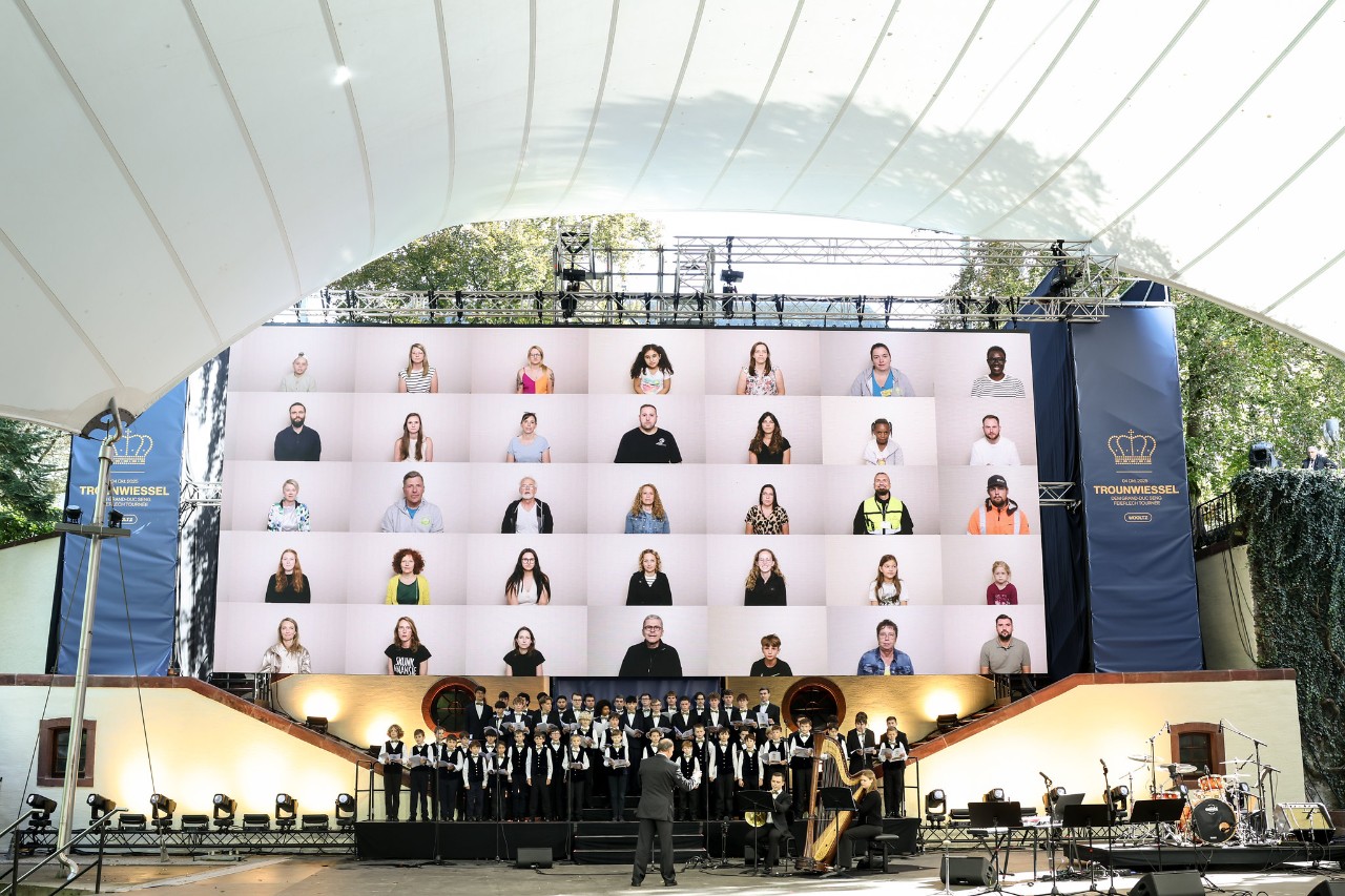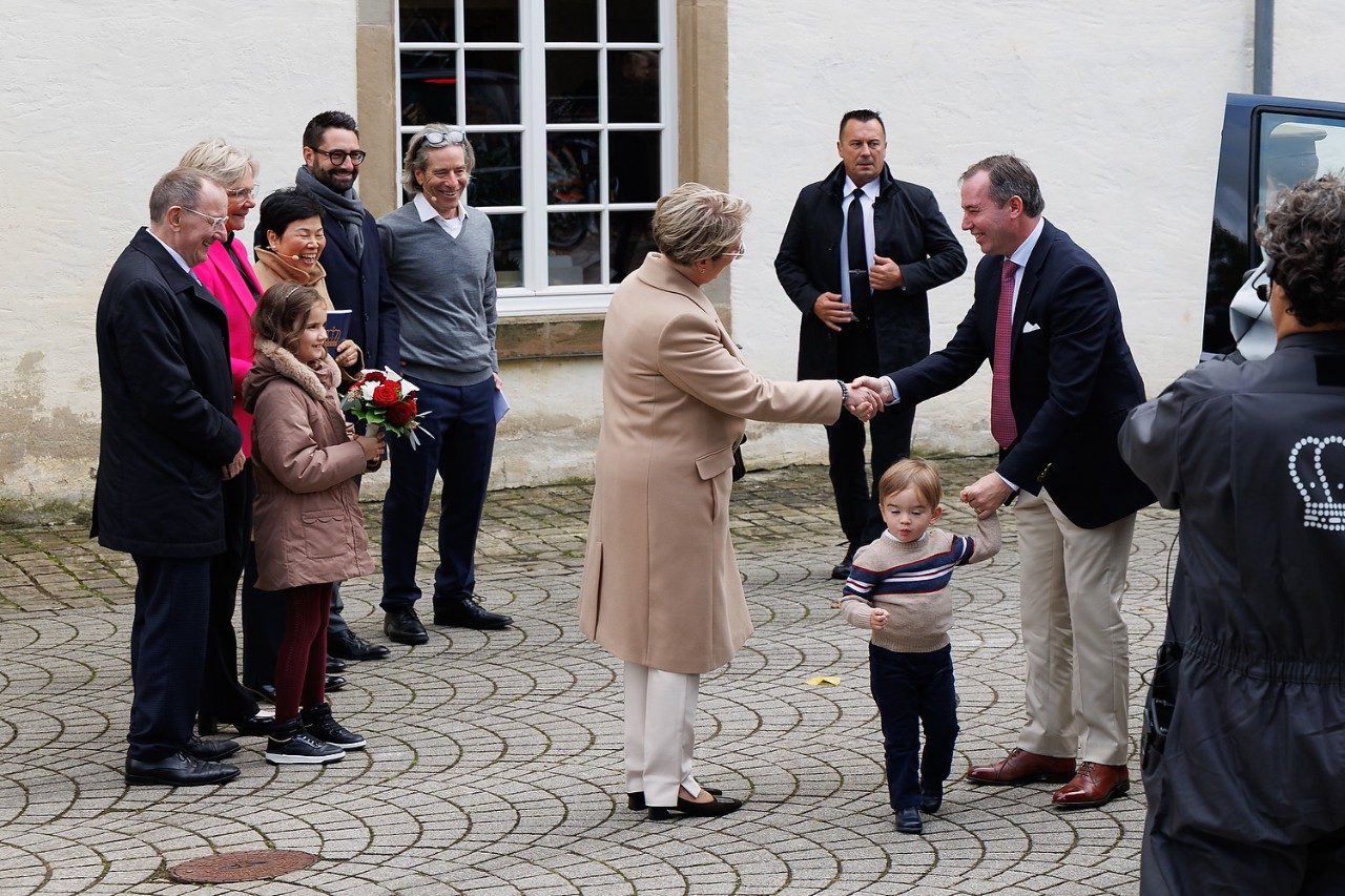 Accueil de LL.AA.RR. le Grand-Duc et la Grande-Duchesse par la ministre de l'Agriculture, de l'Alimentation et de la Viticulture, ministre de la Protection des consommateurs, Martine Hansen, et le ministre de la Culture, ministre délégué au Tourisme, Eric Thill. Le couple grand-ducal assiste à une installation vidéo participative et trois spectacles musicaux à l'amphithéâtre du château de Wiltz.