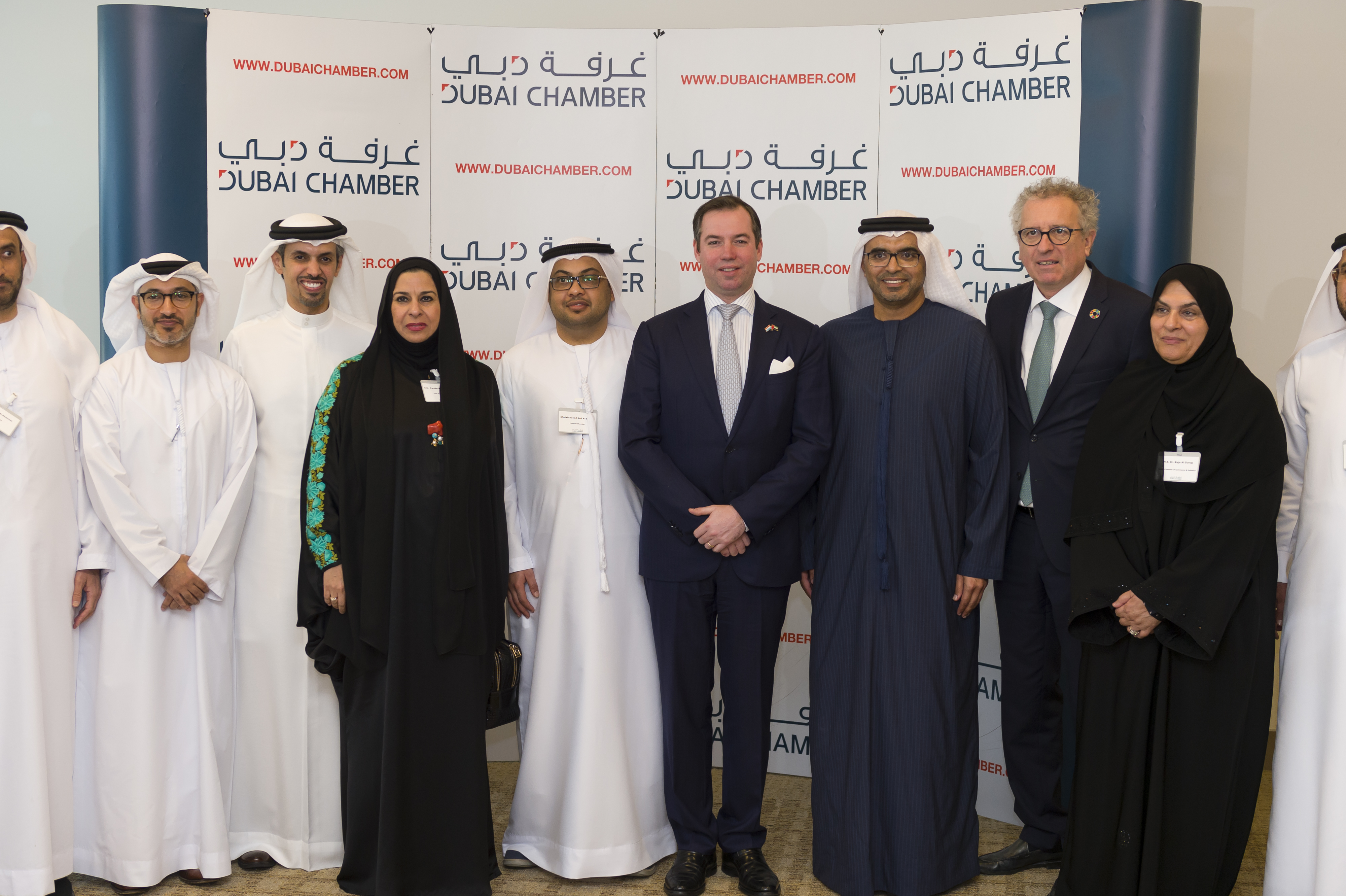 Composée de 90 représentants d'entreprises luxembourgeoises, une délégation d'affaires a assisté à un séminaire économique organisé par la Chambre de commerce luxembourgeoise avec des partenaires locaux à la Chambre de commerce et d'industrie à Dubaï. L'objectif de ce séminaire était la recherche de synergies ainsi que de nouvelles opportunités d'affaires entre les deux pays. Le discours de bienvenue a été prononcé par S.A.R. le Grand-Duc héritier:"Pendant les 10 dernières années, j'avais le plaisir de visiter les EAU, et en particulier Dubaï, à de nombreuses reprises. À chaque fois, j'étais impressionné par le rythme de croissance et de développement de ce pays et de cette ville. Je me réjouis de voir une telle communauté émirienne vivante et dynamique qui respecte et sauvegarde pieusement son patrimoine. Au Luxembourg aussi, nous visons à combiner traditions et développement économique, notamment dans des secteurs de la haute technologie."