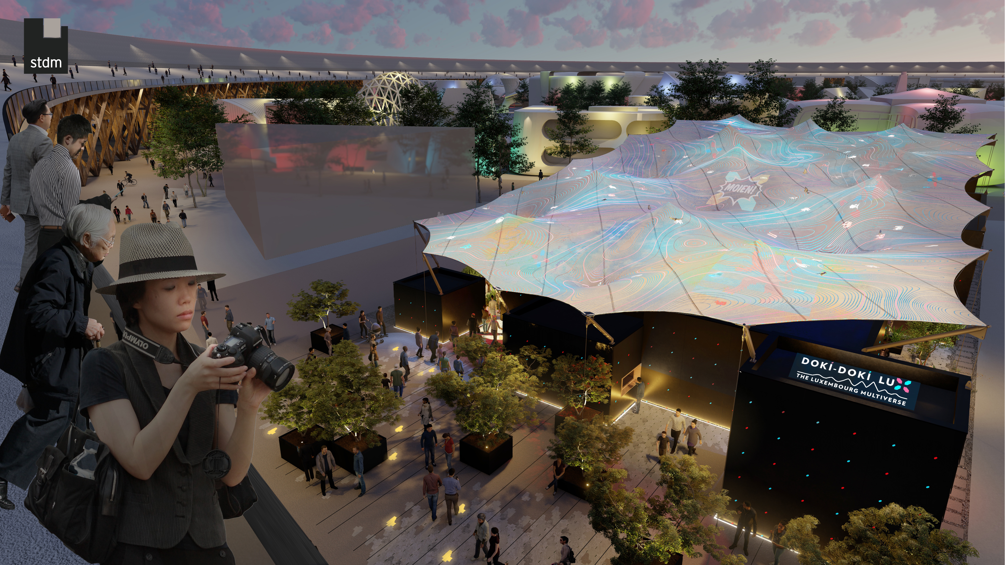 Le pavillon a été imaginé autour du concept "Doki-Doki Lux – The Luxembourg Multiverse". L'architecte a expliqué ce choix: "Au Japon, 'doki-doki' décrit le bruit que fait le cœur quand il bat. Il est utilisé pour exprimer l'enthousiasme et l'excitation, tout comme l'énergie et la passion. Le 'Multiverse' du Luxembourg est global. Il est universel et unique, individuel et collectif, illimité et connecté, ouvert et uni. Toutes les facettes du 'Multiverse' luxembourgeois sont créées et alimentées par trois sources: son inventivité, ses habitants et son territoire. Et il est toujours doki-doki – excitant, vibrant et vivant!"