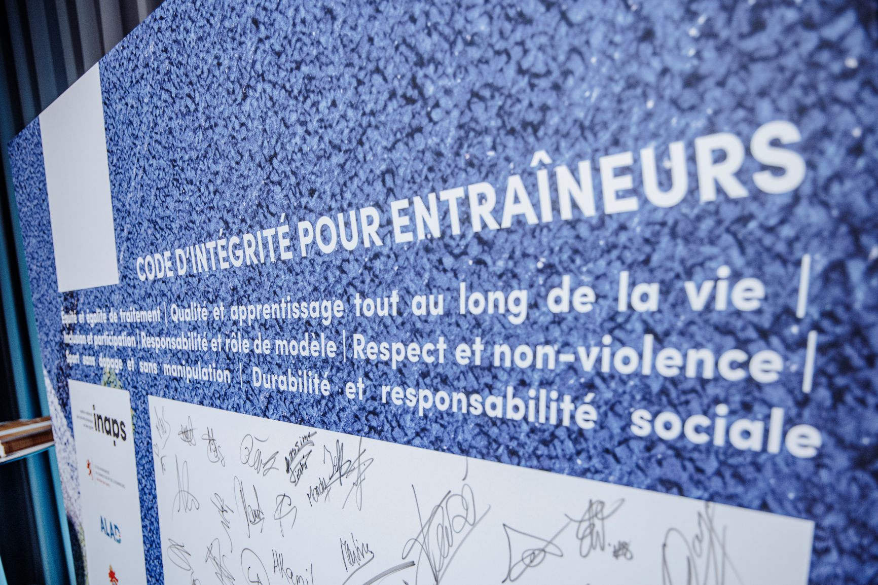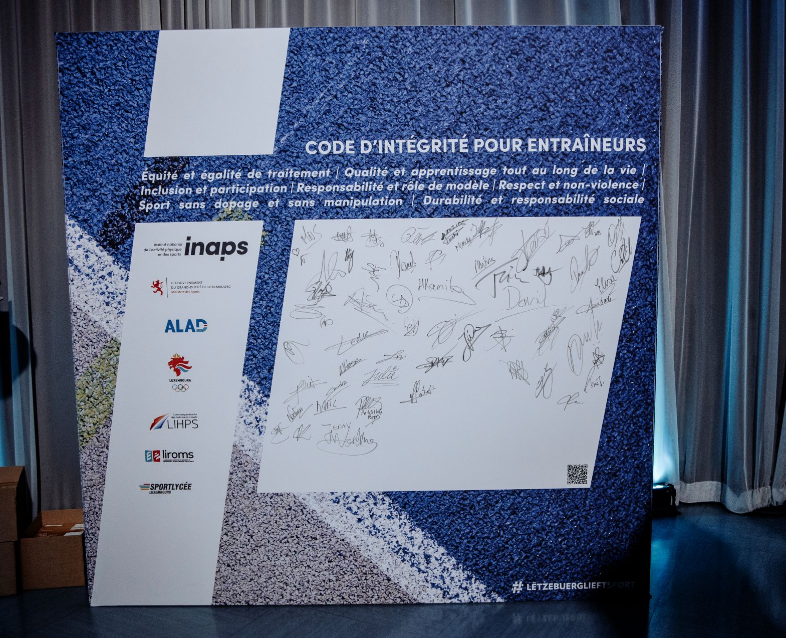 De nombreux lauréats ont saisi l'occasion pour participer à un acte symbolique important en signant un panneau représentant le code d'intégrité pour entraîneurs et en s'engageant ainsi à respecter les valeurs de ce code.