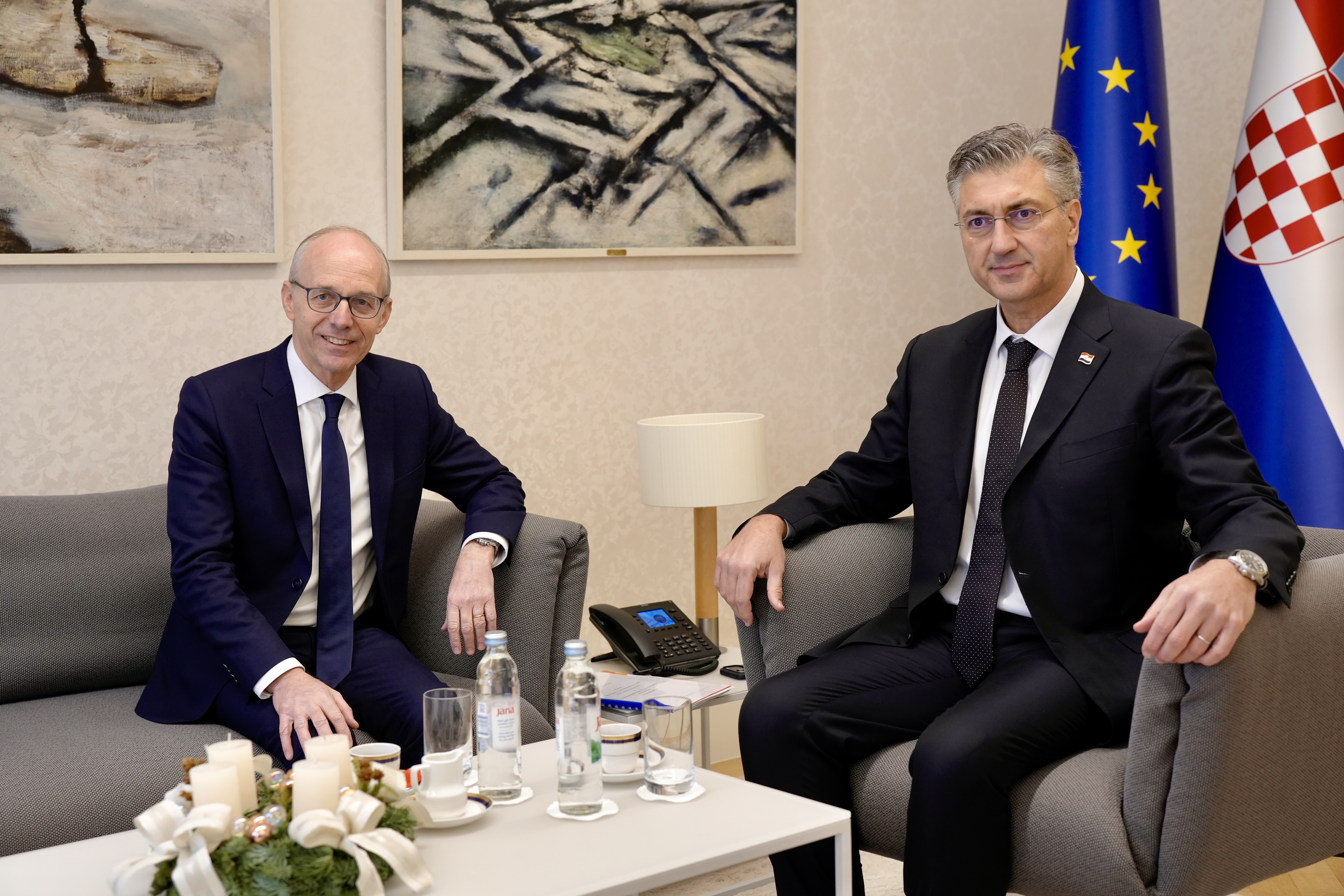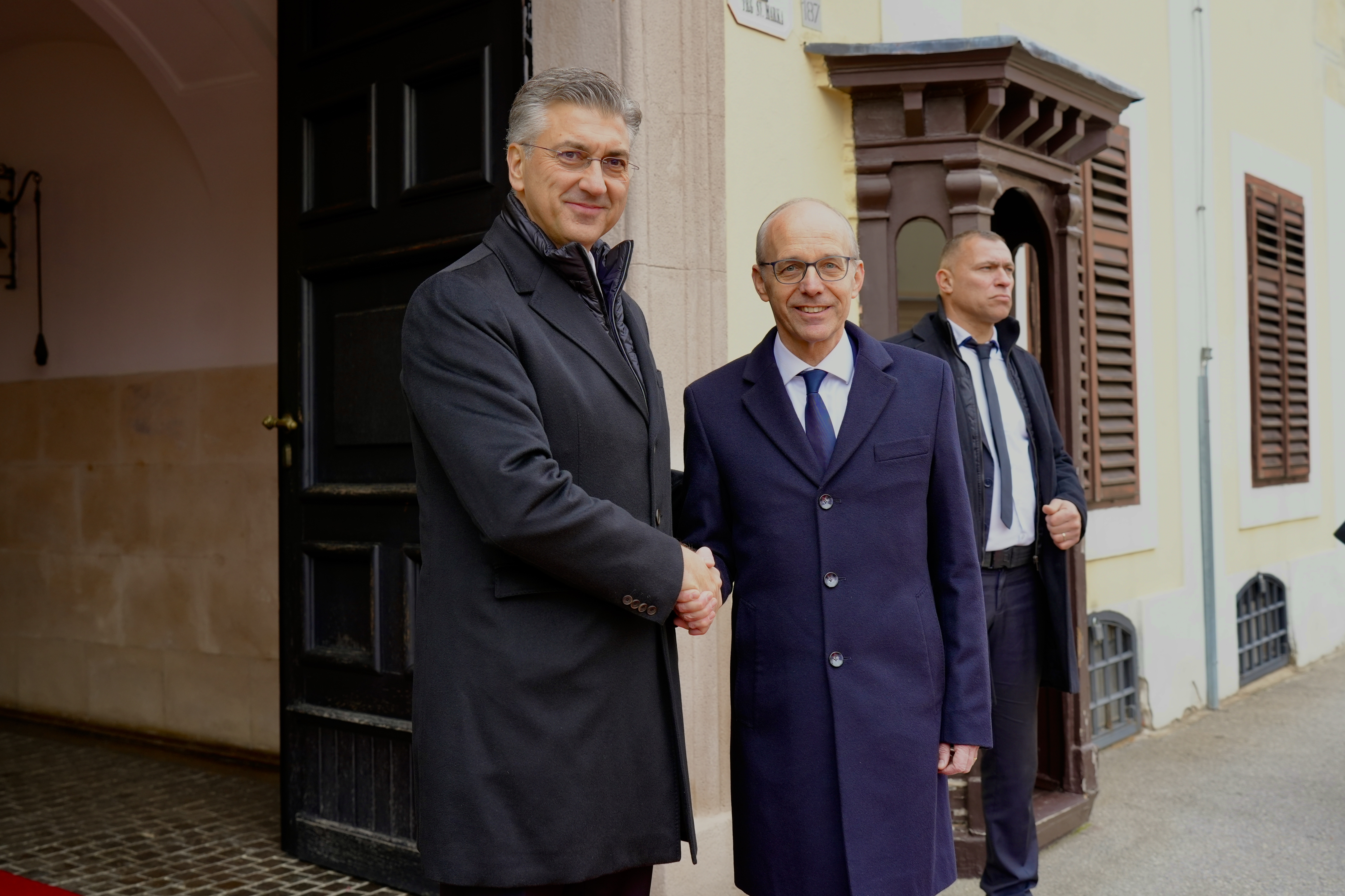 À Zagreb, en Croatie, le Premier ministre a été reçu par Andrej Plenković, Premier ministre de la république de Croatie, pour une entrevue de travail. Dans le cadre de cette visite, il a également rencontré Gordan Jandroković, président du Parlement croate.
