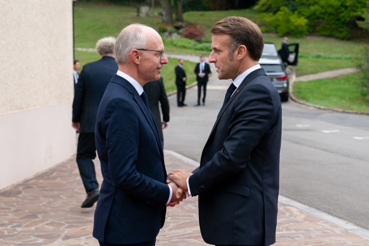 En marge des cérémonies officielles, le Premier ministre Luc Frieden accueille le président de la République française, Emmanuel Macron, pour un entretien en tête-à-tête au château de Senningen.