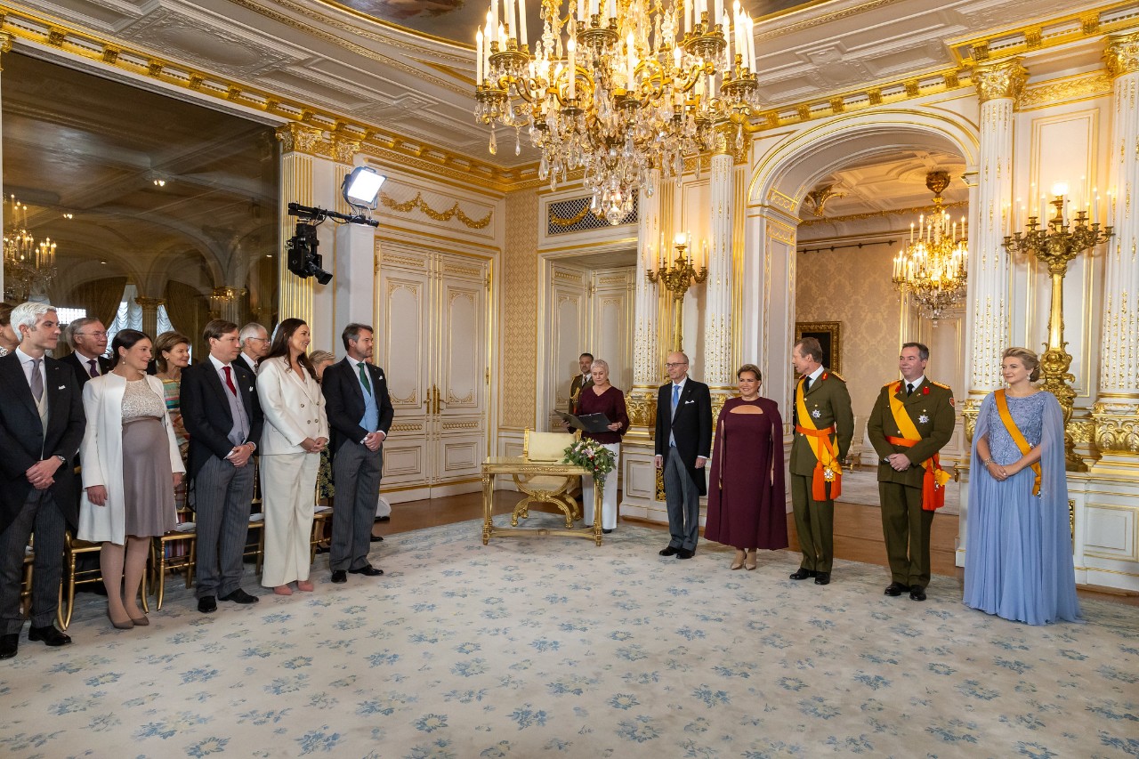 No der Zeremonie an der Chamber geet déi groussherzoglech Famill, zesumme mat den nationalen an internationalen Dignitären, zeréck an de Palais. Déi nei groussherzoglech Koppel, a Begleedung vun hire Kanner, dem Prënz Charles an dem Prënz François, kommen op de Balcon fir d'Bevëlkerung ze begréissen. Duerno kommen de Grand-Duc Henri an d'Grande-Duchesse Maria Teresa, esou wéi och déi belsch an hollännesch Kinneksfamilljen dobäi.