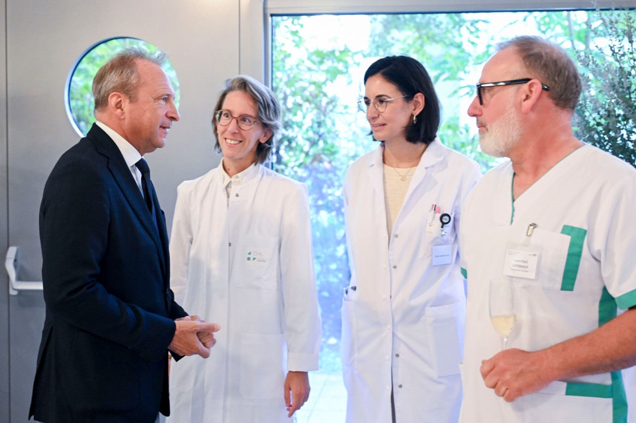 De Grand-Duc besicht den Hôpital Intercommunal Steinfort (HIS) wou en dem Personal aus dem Gesondheetssecteur an de Patiente begéint, dat a Begleedung vum Minister fir Famill, Solidaritéit, Zesummeliewen an Accueil, Max Hahn, der Ministesch fir Gesondheet a sozial Sécherheet, Martine Deprez, an dem Finanzminister, Gilles Roth. Duerch si sollen all déi, déi onermiddlech der Gesellschaft déngen, och wärend de Feierdeeg, ervirgehuewe ginn.