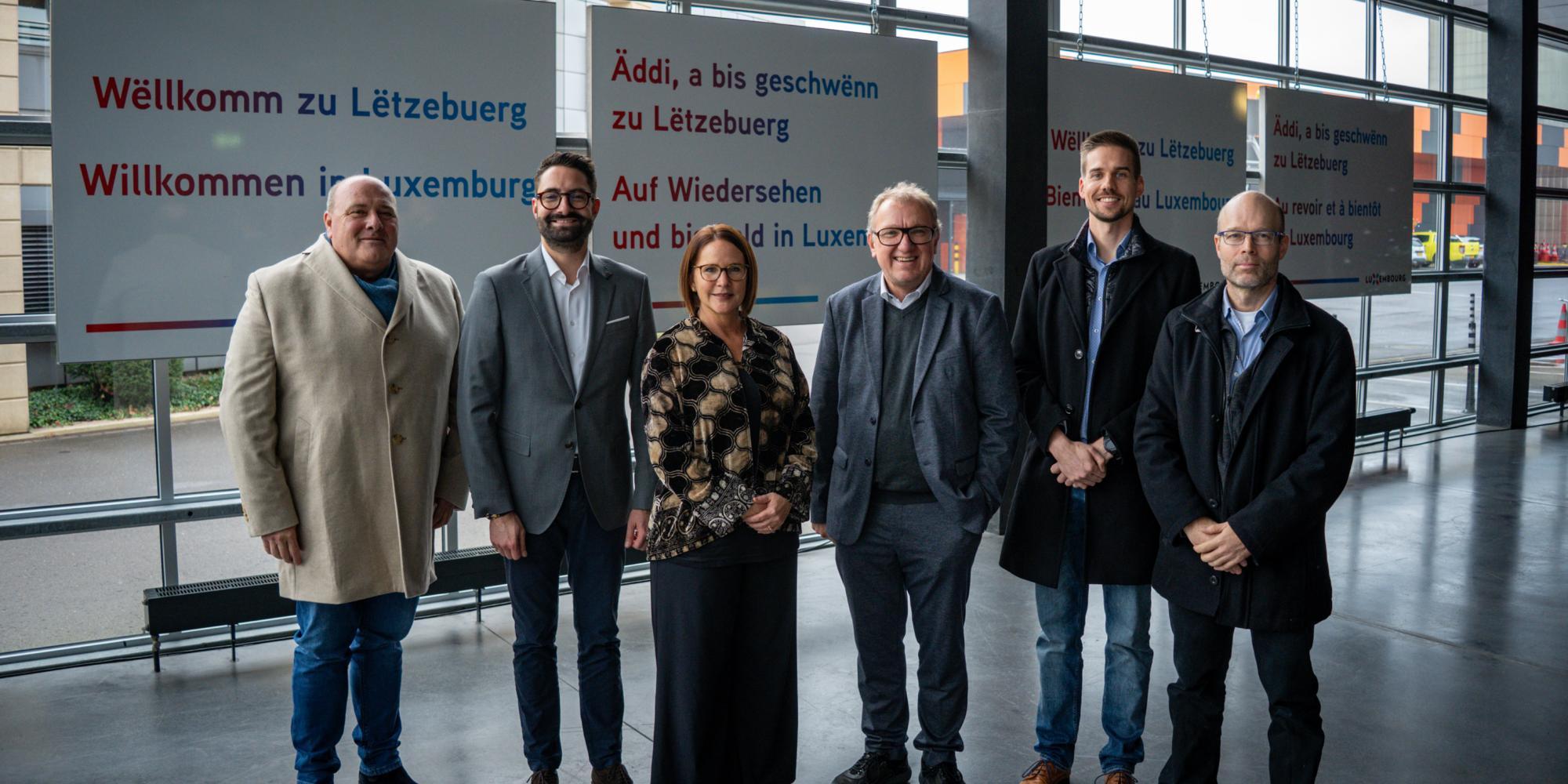 Am Kader vun den Efforten, fir d'Visibilitéit vun der Lëtzebuerger Sprooch am ëffentleche Raum ze stäerken, waren de Kulturminister, Eric Thill, an d'Ministesch fir Mobilitéit an ëffentlech Aarbechte, Yuriko Backes, sech haut am Atelier vun der Stroossebauverwaltung déi nei zweesproocheg Begréissungsschëlder ukucken, déi op Initiativ vum Kulturministère no bei de Grenzen op den Autobunnen opgestallt ginn.