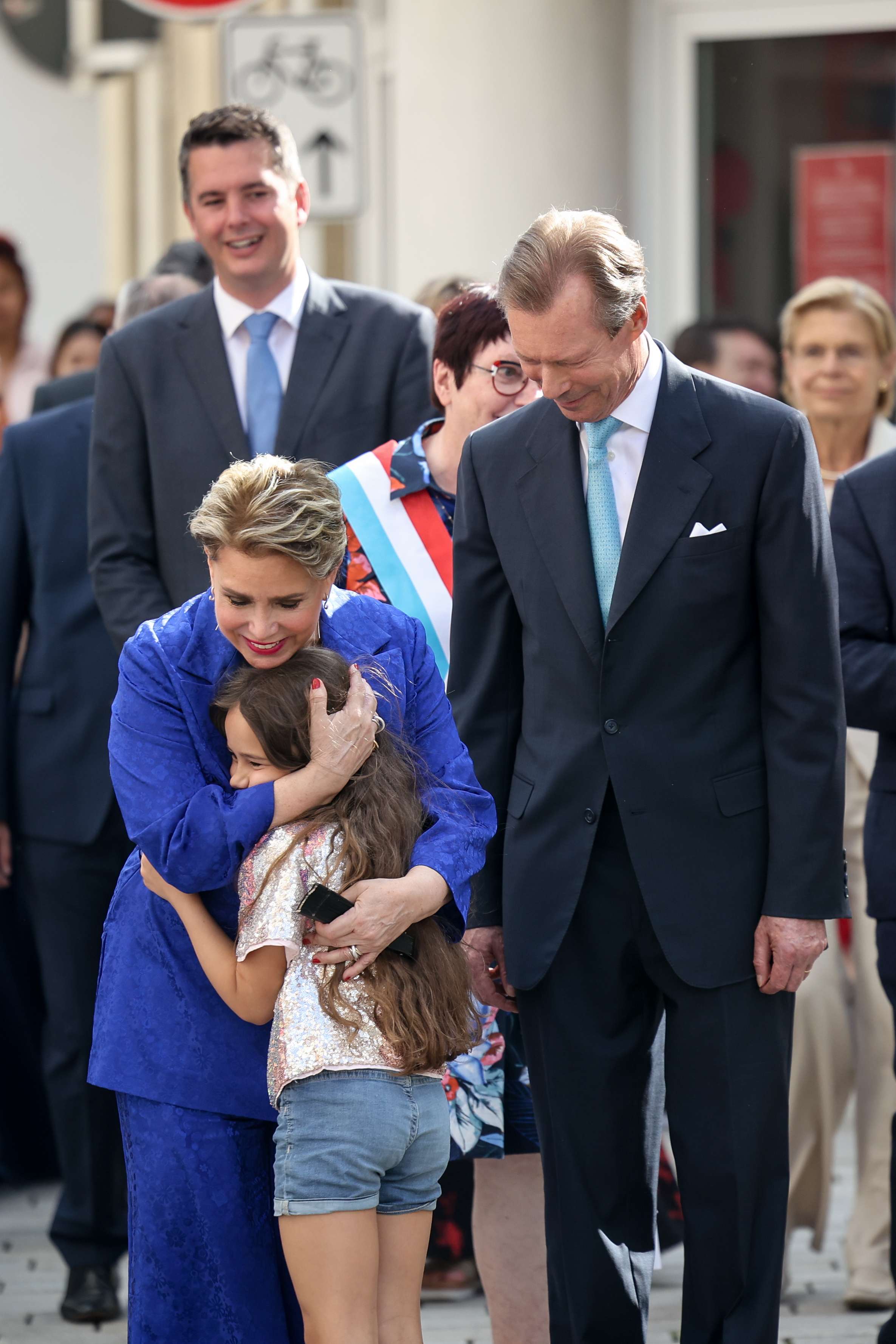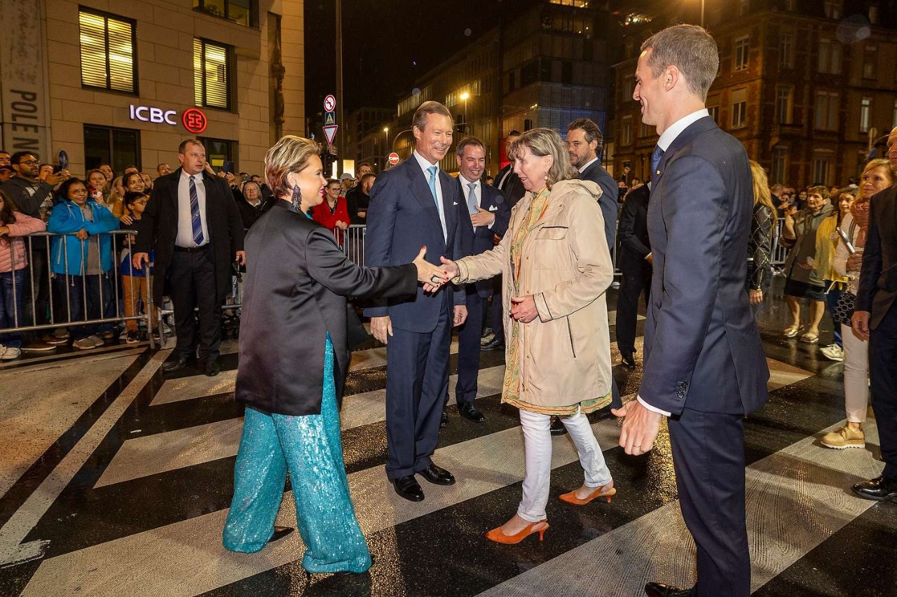 Déi groussherzoglech Famill gëtt vum Chamberspresident Fernand Etgen, vum Premier- a Staatsminister Xavier Bettel, a vun der Buergermeeschtesch vun der Stad Lëtzebuerg Lydie Polfer, empfaangen.