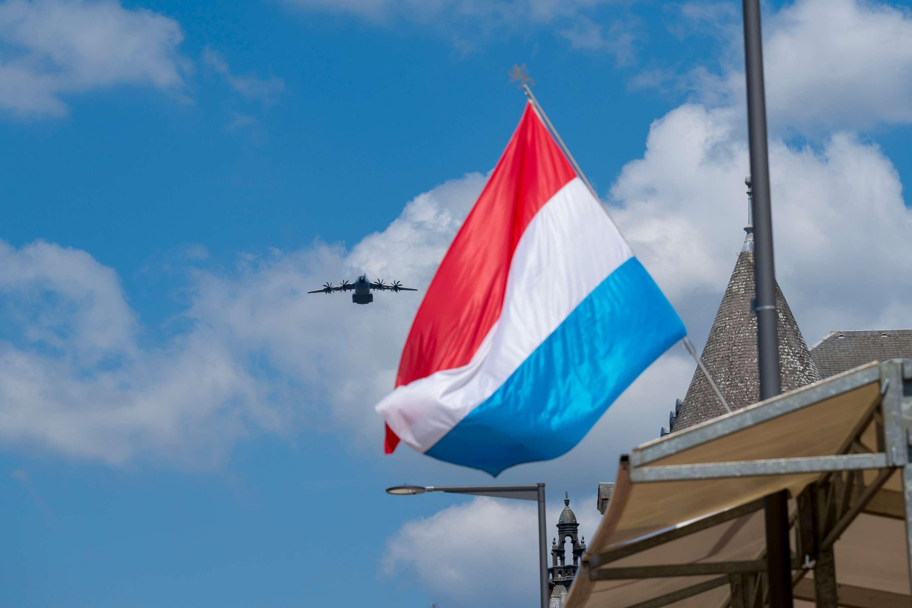 - Niddreg iwwert den Defilé fléie verschidde Fligeren: en Helikopter H145M vun der Police, e Fliger fir den Transport an de Ravitaillement vum Typ Airbus A330 vun der Multi Role Tanker Transport Unit an en Transportfliger vum Typ A400M vum 15. Wing vun der Belscher Loftkomponent, dee vu Lëtzebuerger Offizéier geflu gëtt.