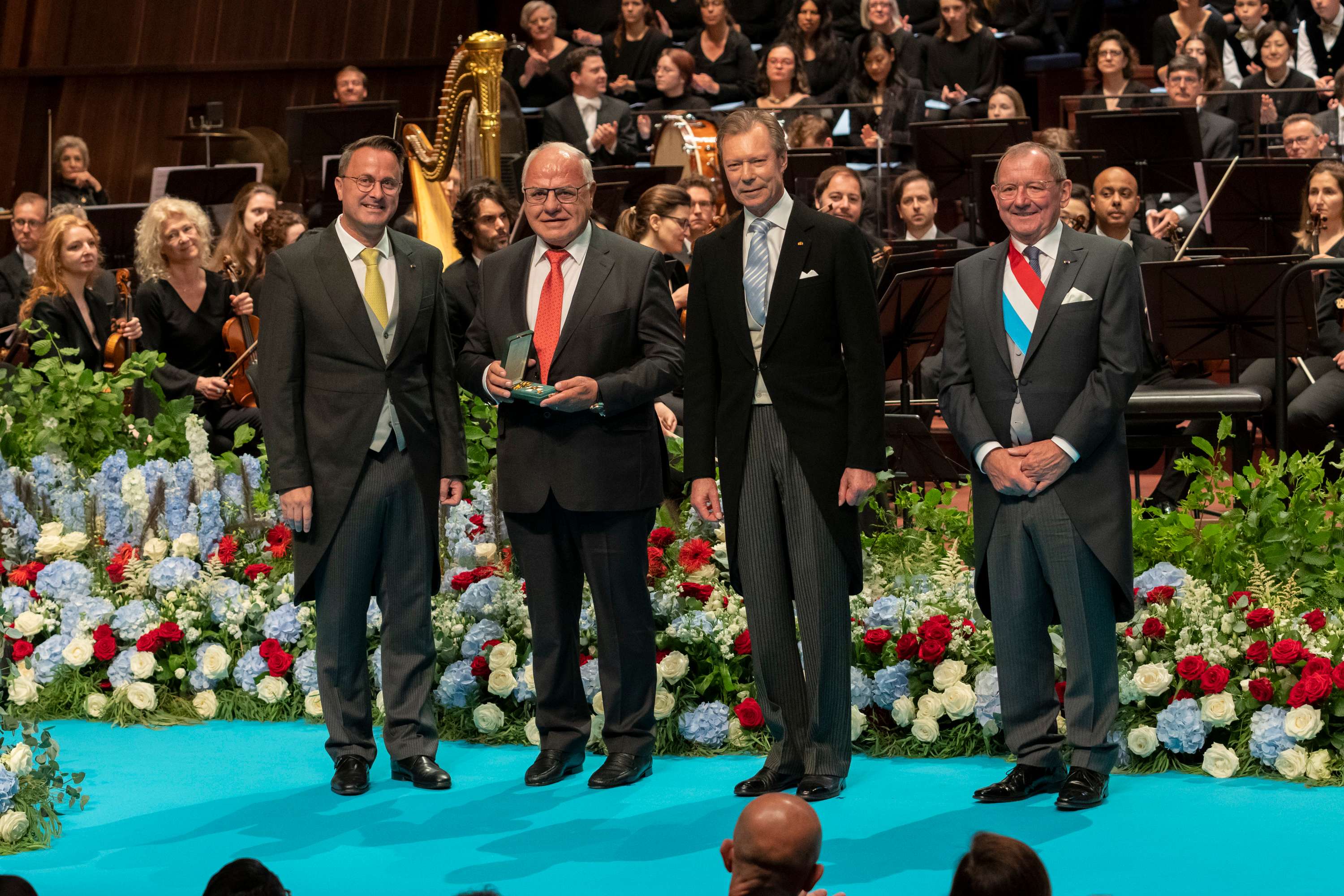 - Georges Christen, bekannt als staarke Mann, fir säi fräiwëllegt Engagement wärend ville Jore bei der Caritas, krut den Uerde vun der Couronne de chêne (Offizéier);