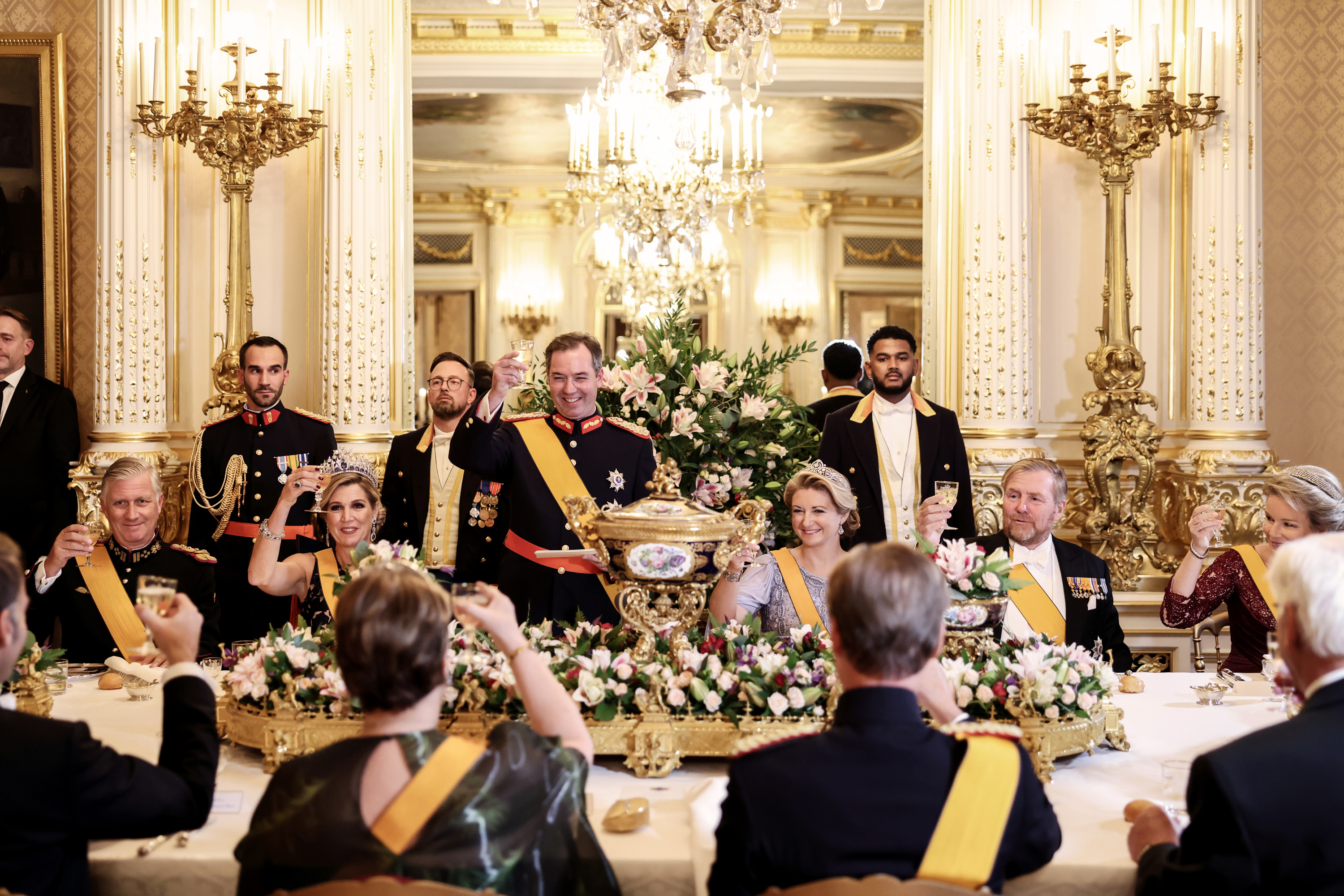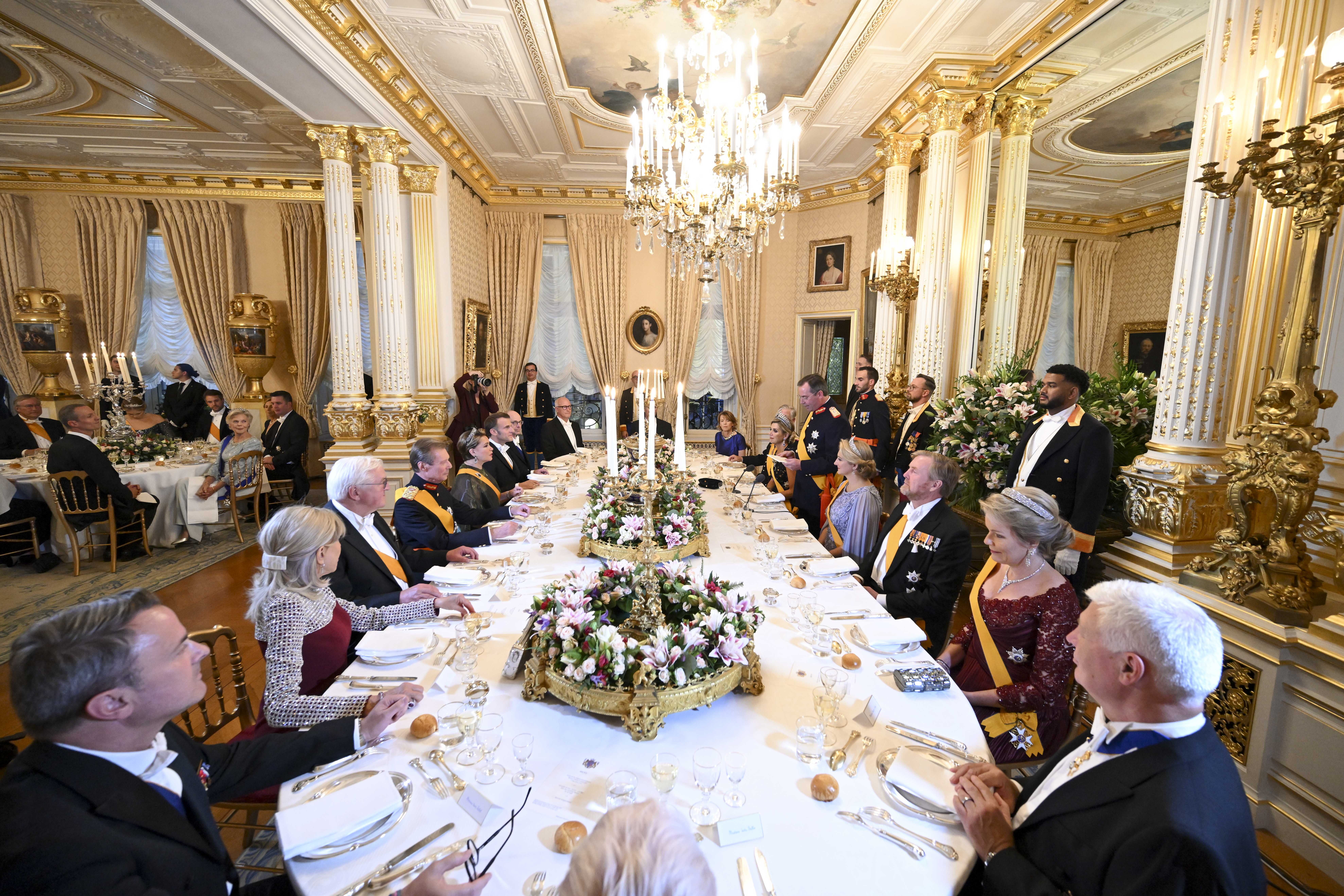 Follgend auslännesch Dignitären huelen un der Zeremonie deel: Hir Majestéiten de Kinnek an d’Kinnigin vum Kinnekräich Holland a Begleedung vun Hirer Kinneklecher Altess, der Ierfprinzessin Catharina-Amalia aus Holland, Prinzessin vun Oranien; Hir Majestéiten de Kinnek an d’Kinnigin vun de Belsch, a Begleedung vun Hirer Kinneklecher Altess, der Ierfprinzessin Élisabeth, Duchesse vu Brabant; d'Presidentin vum Europäesche Parlament, Roberta Metsola an hire Conjoint, Ukko Metsola; an de President vum Europarot, António Costa.