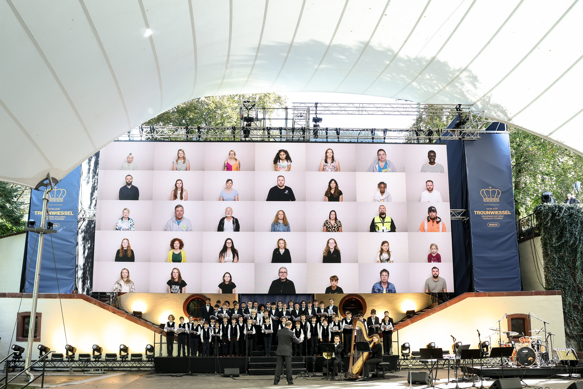 Gedroe vun enger orchestraler an dynamescher Show, trëppelt déi groussherzoglech Koppel iwwert d'Rout Bréck. No an no schléissen sech Representantë vun der Lëtzebuerger Gesellschaft an engem bonte Spektakel vun Trammen hinnen un. Um Parvis vum Glacis gëtt doropshin eng speziell Droneshow präsentéiert, souwéi e Concert, wou sech Talenter vun der Lëtzebuerger Musekszeen presentéieren.